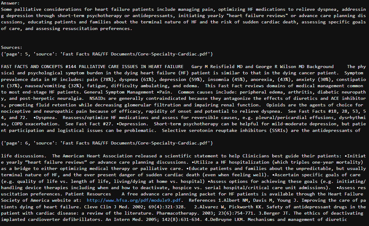 When I ask a RAG: “What are some palliative care considerations for heart failure patients?” the final prompt sent to the LLM is: